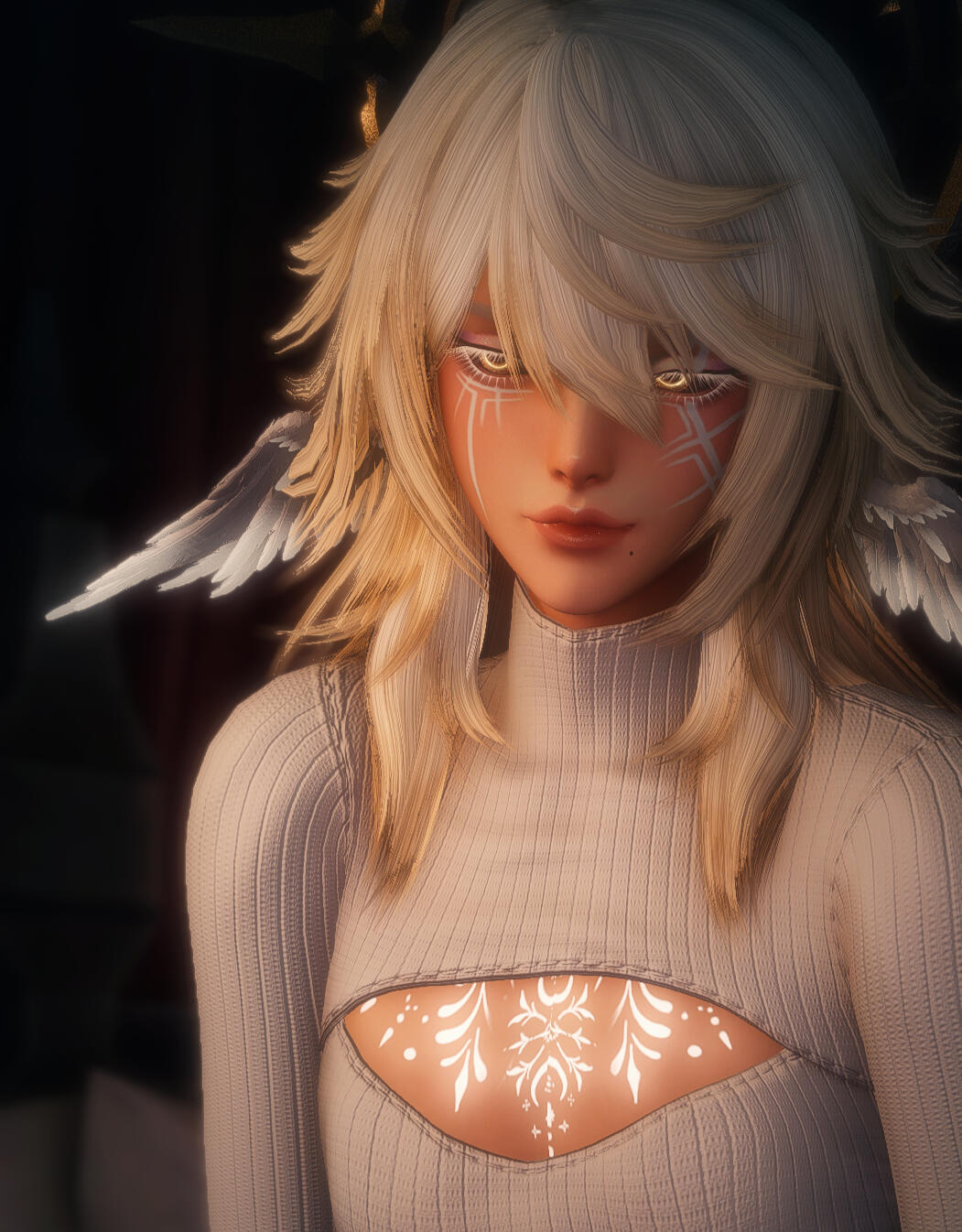 ✦ㅤㅤTattoosㅤㅤHis entire body is covered in decorative tattoos. When asked about them, he seems almost hesitant to give an answer. The ones on his face he says are proof of his duty and ties to divinity.